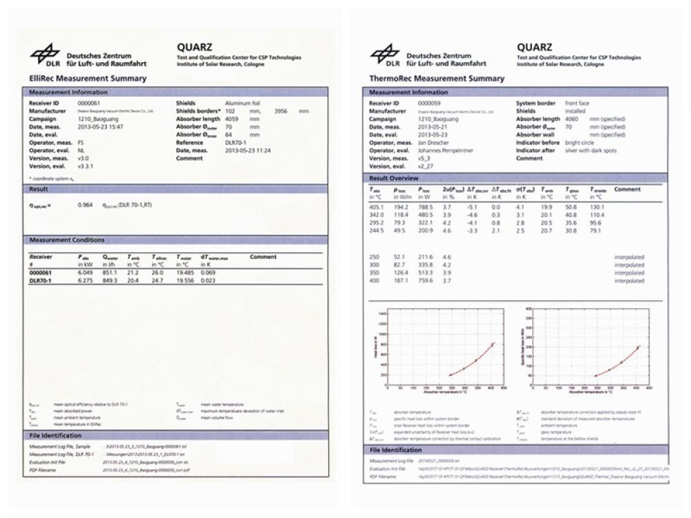 In May 2013, Shaanxi Baoguang solar collector was awarded DLR and PSA certificates.