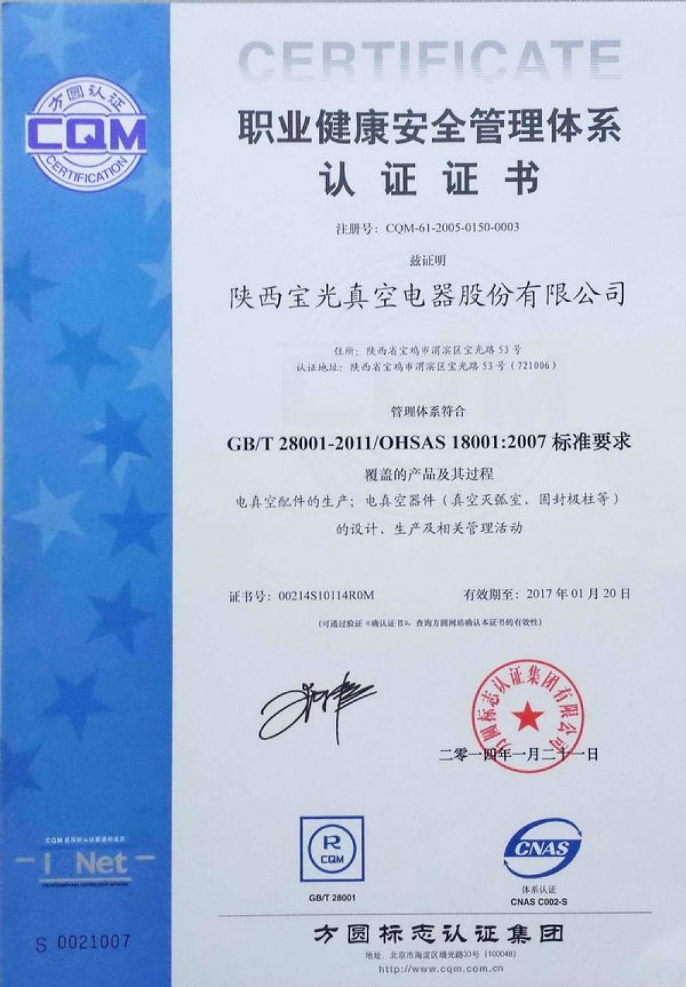 - 2014年通過OHSAS 18001:2007職業健康安全管理體係認證