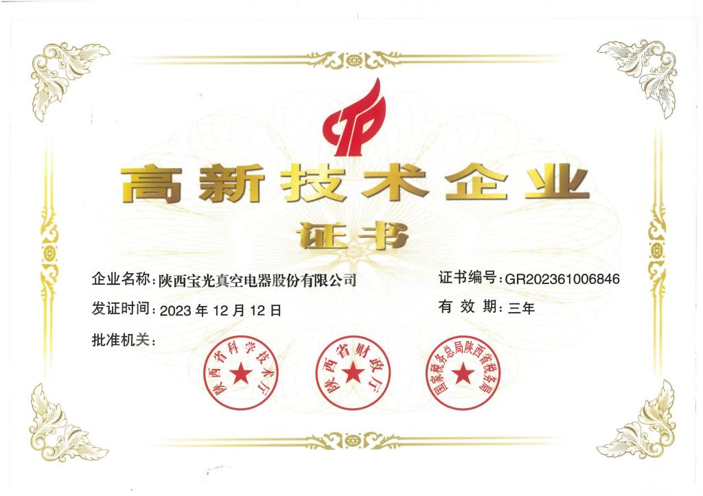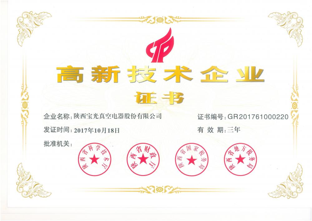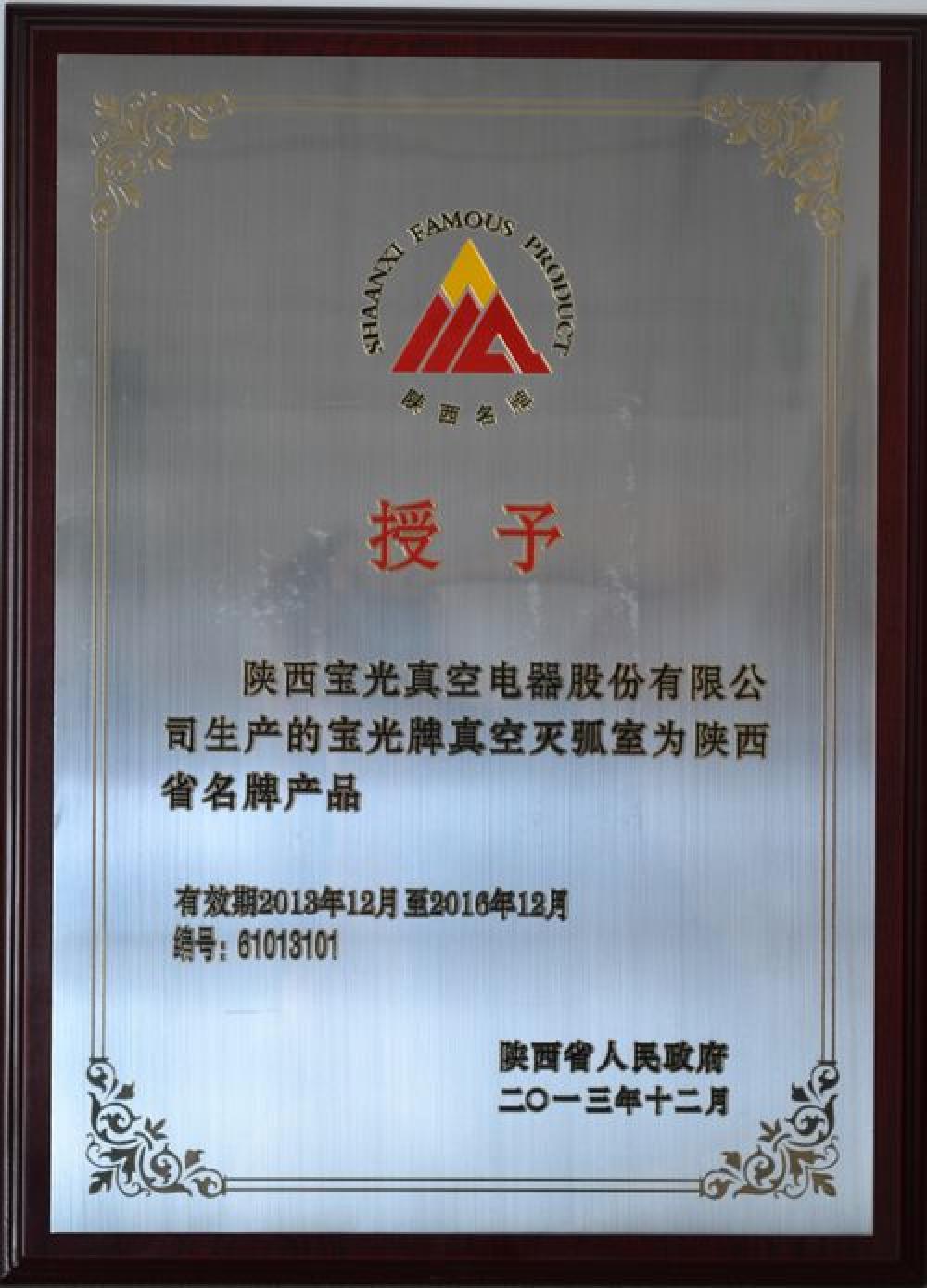- 寶(bǎo)光牌真空滅(miè)弧室被授予陝(shǎn)西省名牌產品稱號