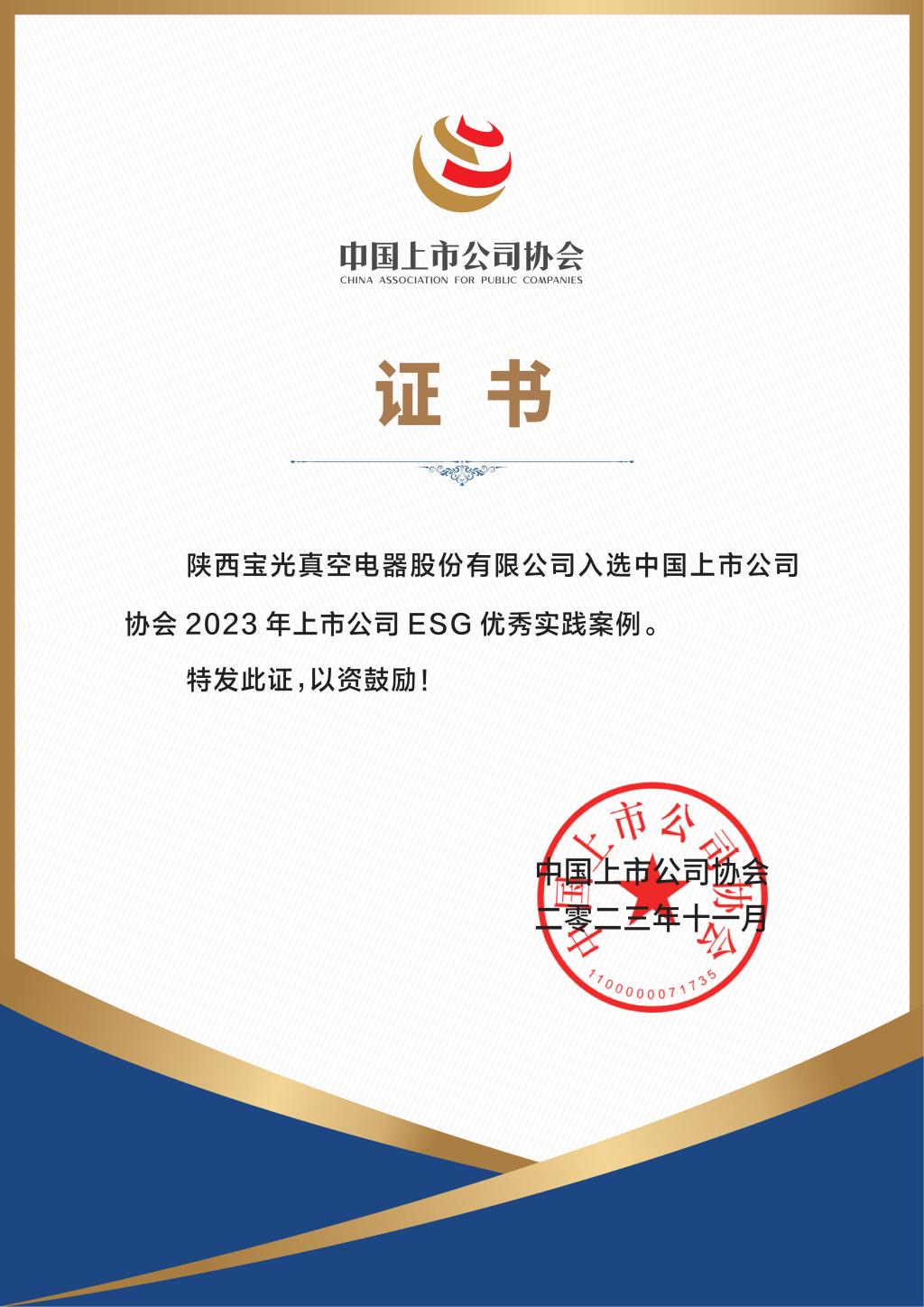 - 2023年入選中國上市公司協會ESG優秀實踐案例