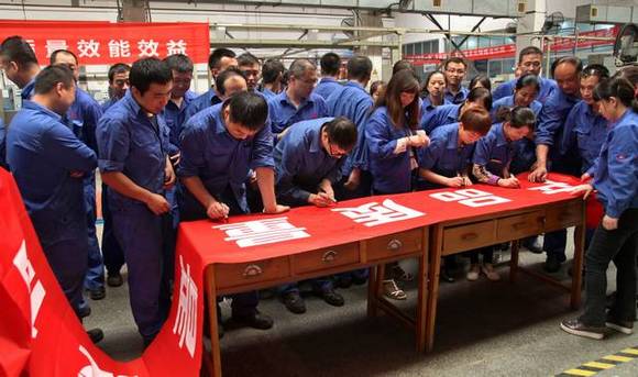 職工(gōng)代表王道斌現(xiàn)場帶領大家高聲做出了“產品質量是我們個人的尊(zūn)嚴”鄭重承諾。