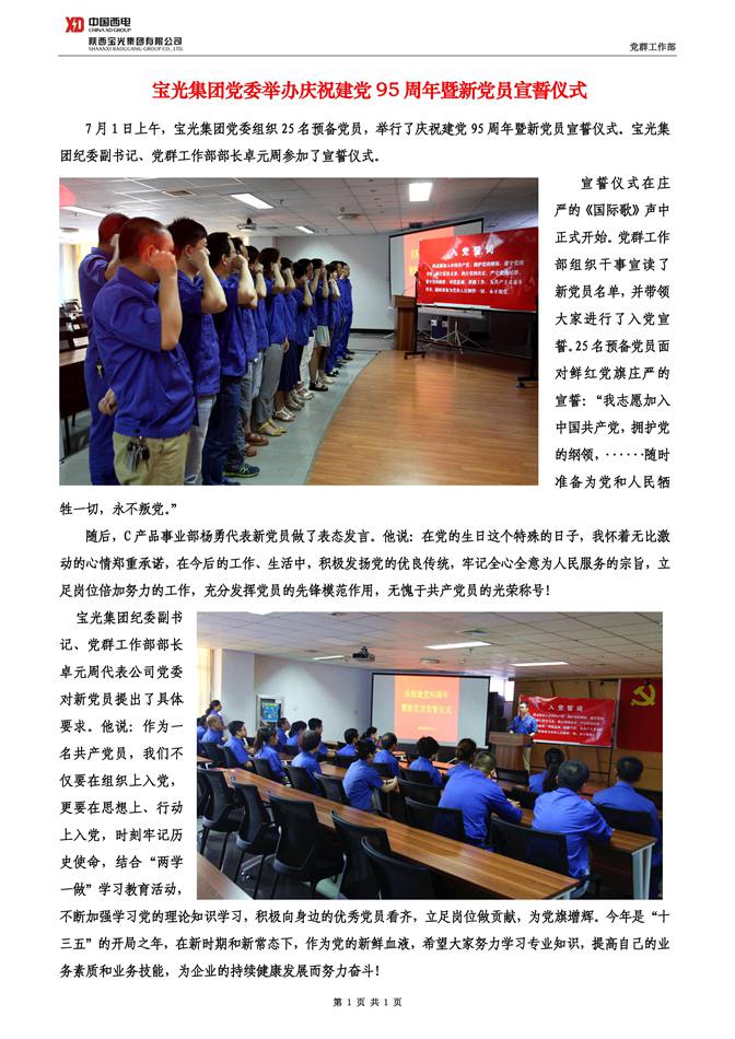 草莓视频黄污污污集團黨委(wěi)舉辦慶祝建黨95周年(nián)暨新黨員宣誓儀式