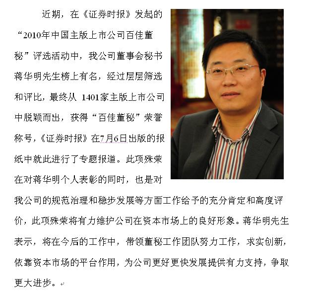 我公司董事會秘書蔣華明先生獲得(dé)“百佳董秘”榮譽稱號