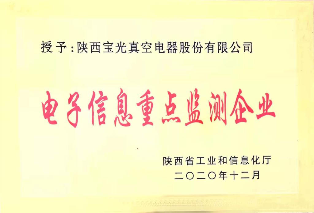 2020年12月21日,陝西省工信廳“2020年(nián)全省電子信息重點監測企業統計調查暨運行監測會議”在西安召開,我公司入(rù)選會議30戶重點監測企業,企業管(guǎn)理處負責人代表我公司上台領取授牌。