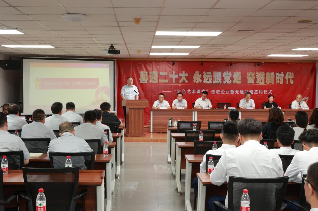 謝洪濤對各位領導(dǎo)、嘉賓的到來表示誠摯歡迎,他指(zhǐ)出,學校在人才培養(yǎng)、經營管理、技術研究等方麵(miàn)給公(gōng)司提供了無私支持,此次“紅色(sè)藝(yì)術課堂”進企業進一步激發了幹部職工崇高的(de)愛黨愛國情懷(huái),雙方凝(níng)聚共識、結對共(gòng)建、簽約揭牌,將開啟校企黨建聯建共建新紀元,掀開校企黨建結對共建(jiàn)、資源(yuán)共(gòng)享、優勢互補、共同提高的新篇章(zhāng)。為此,他提出三點希望:一是要充分認識結對共建的重要(yào)意義,提高站(zhàn)位,增強責任感、緊迫感和使命感,圍繞校企高(gāo)質量發展,強強聯合,共(gòng)同提高,努(nǔ)力建設校企(qǐ)黨建聯建共建的窗口和示範基地;二是要充分發揮結對共建的資源優(yōu)勢,通過多種方式借鑒好方法好經驗,實現黨建與生產經營、黨建與學校發展工作良性融合發展,實(shí)現雙方共贏(yíng);三是要充分彰顯結對(duì)共建的時(shí)代價值,持之以恒推進落實黨建共建基地工作規劃,營造濃(nóng)厚的共建工作氛圍,按工作計劃紮實有效開展各項聯建共建活動。