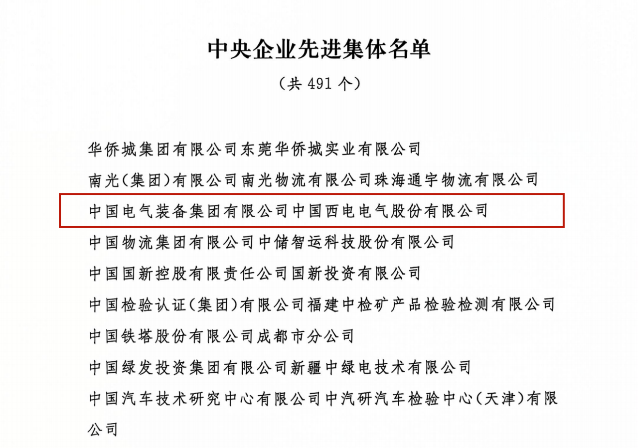 中央企(qǐ)業先進集體和勞動模範每5年評選一次(cì),是國務院國資委係統的最高級別榮譽。在中華(huá)人民共和國成立75周年之際(jì), 為表彰先進,樹立典型,進一(yī)步激勵中央企業廣大職(zhí)工(gōng)在全麵推動國資央(yāng)企高質量發展的(de)新(xīn)征程中建(jiàn)功(gōng)立業,最終由人力資源社會保障部、國務院國資委聯合表彰。此次榮(róng)獲“中央企業(yè)先進集體”稱號,不僅是對西(xī)電(diàn)近年來辛勤耕(gēng)耘和不懈努力的肯定,更是對其在科技創新、產業發展和社會責任等方麵取得(dé)顯著成績的表彰。西電(diàn)將以此次榮獲“中央企業(yè)先進集體”稱號為契機,進一步加大科技創新力度,提升產(chǎn)業發展水平,積(jī)極履行社會責任,為建設世界一(yī)流企業貢獻西(xī)電力量!