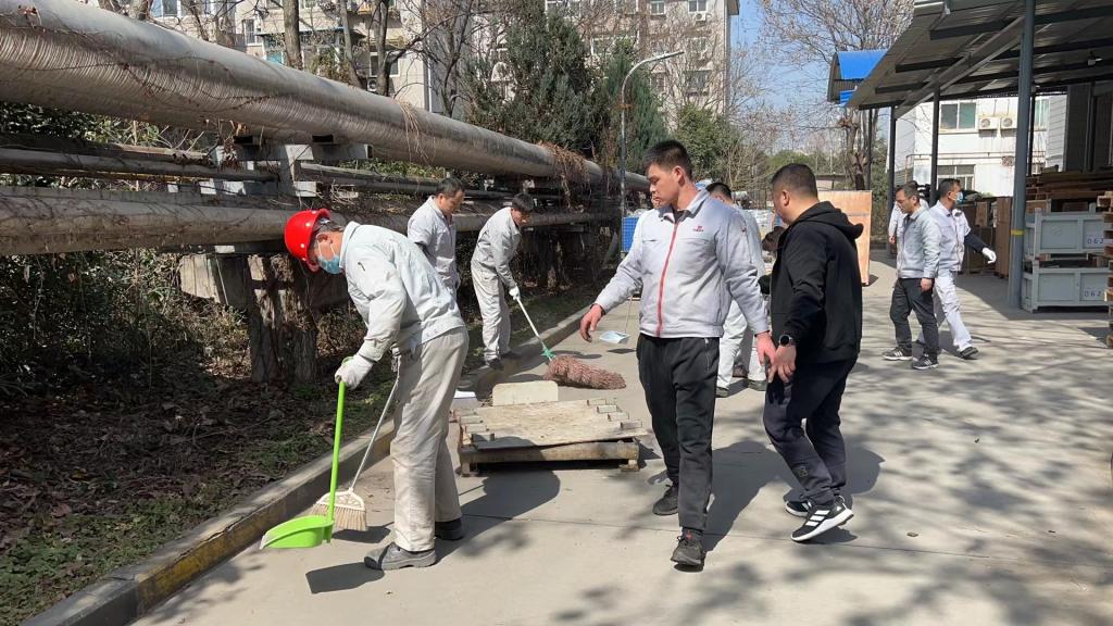 精工分公司黨支部電器產線職工(gōng)對產線窗戶上玻璃(lí)和窗台進(jìn)行擦拭,並對花壇內樹葉垃圾、花房前建築垃圾進行了(le)仔細清掃和集中裝運清理;波紋管產線職工對產線(xiàn)外(wài)車棚地段(duàn)衛生進行清理,並對亂停亂放的車輛進行規範擺放(fàng)。通過2個小時的緊張勞(láo)動,路麵變得整潔幹淨(jìng)、窗戶玻璃(lí)變得一(yī)塵不(bú)染、花房前的環境煥然一新。
