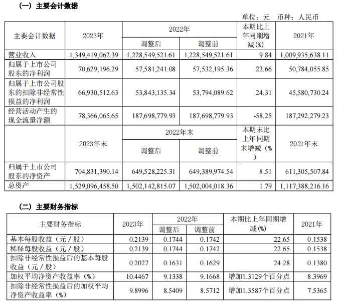 草莓视频黄污污污股份2023年度主(zhǔ)要財務指標